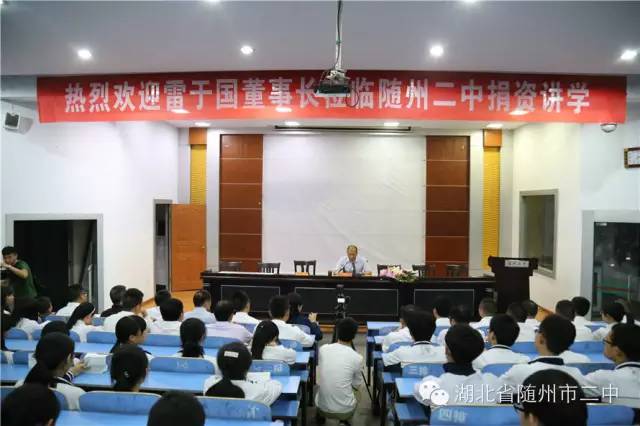 10月18日晚上七点,裕国菇业董事长雷于国先生率领裕国菇业公司董事会成员、企业高管、中级管理人员一行20多人来到随州二中,在学术报告厅举行了捐资助学仪式,随后雷总还为300多名师生代表做了一场生动感人的励志演讲。报告会由邱校长主持,王校长致欢迎词并作了总结讲话。
