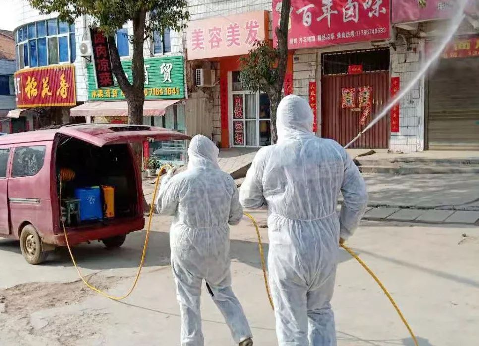 镇畜牧兽医中心调用机动消毒设备一台,对镇区街道、各行政事业单位、集贸市场、公共场所等重点场所全面消毒处理。