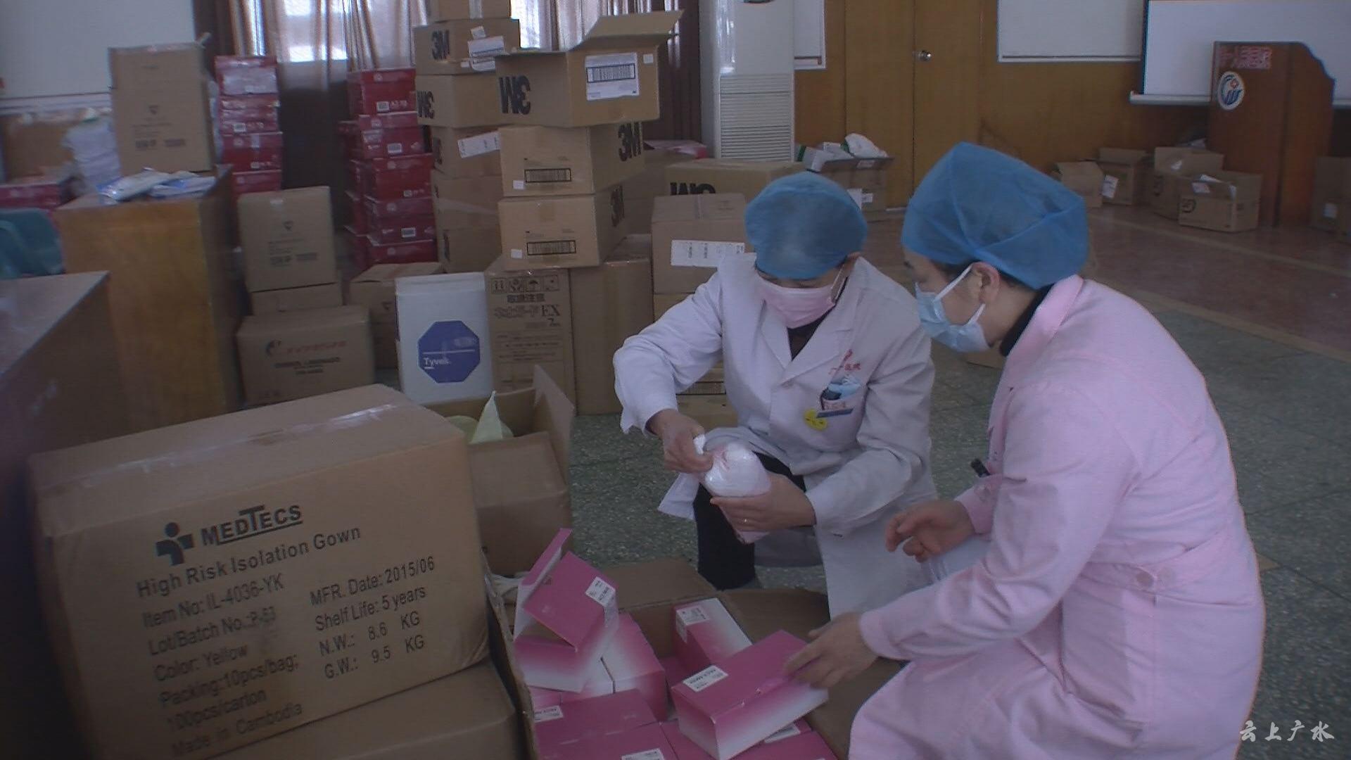 (同期声)广水市一医院副院长 左红涛:“今天收到医疗用品,鼓舞医疗人员众志成城,抗击疫情,定能胜利。”广水市一医院还将把这批医疗物资分享给广水市二医院,中医院,长岭卫生院,交警大队,南关社区等单位,用于新型冠状病毒感染的肺炎疫情防疫工作。