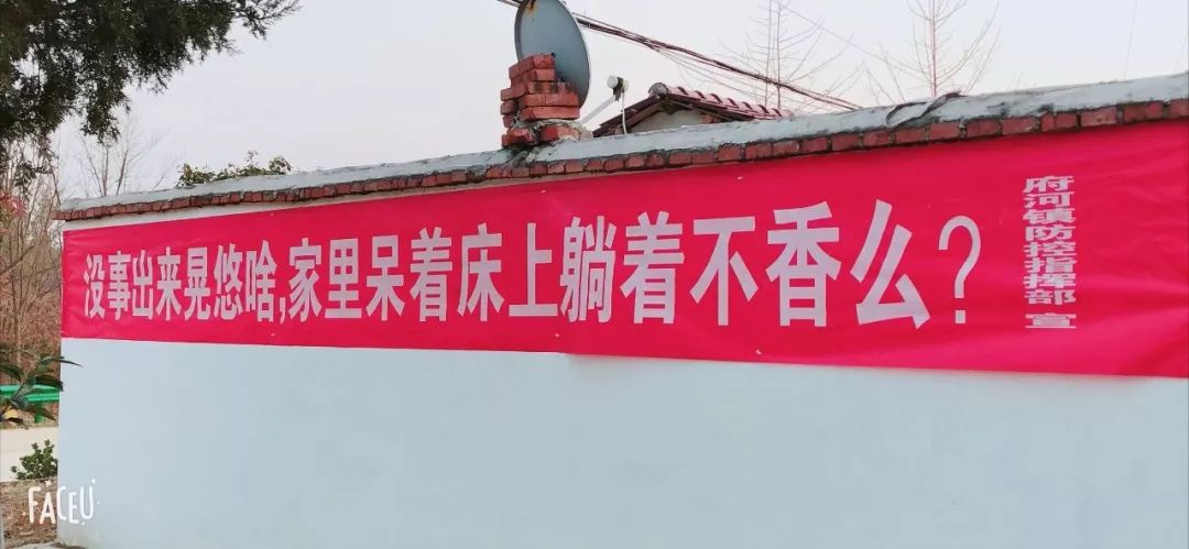 新型冠状病毒感染的肺炎疫情防控形势严峻,在随州市曾都区府河镇,当地工作人员挂上了防疫宣传标语横幅,以接地气的形式呼吁村民们做好防疫工作。看了这些标语横幅,你就明白为什么要紧紧依靠人民群众打赢疫情防控阻击战了。