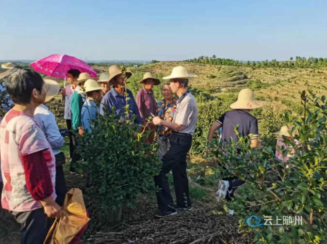 省林业局油茶专家在岳雄丰公司现场为群众指导油茶管理技术