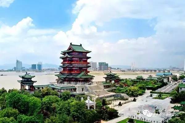 列车进入江西,位于南昌的滕王阁也是十大名楼之一。它因唐太宗李世民之弟——李元婴始建而得名,因初唐诗人王勃诗句“落霞与孤鹜齐飞,秋水共长天一色”而流芳后世。