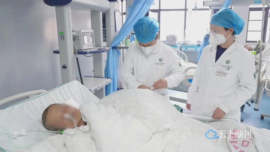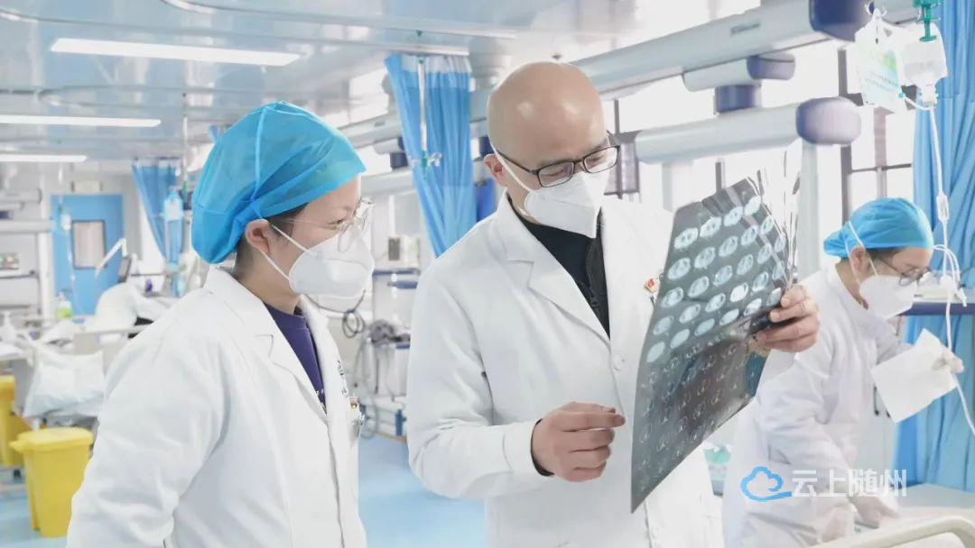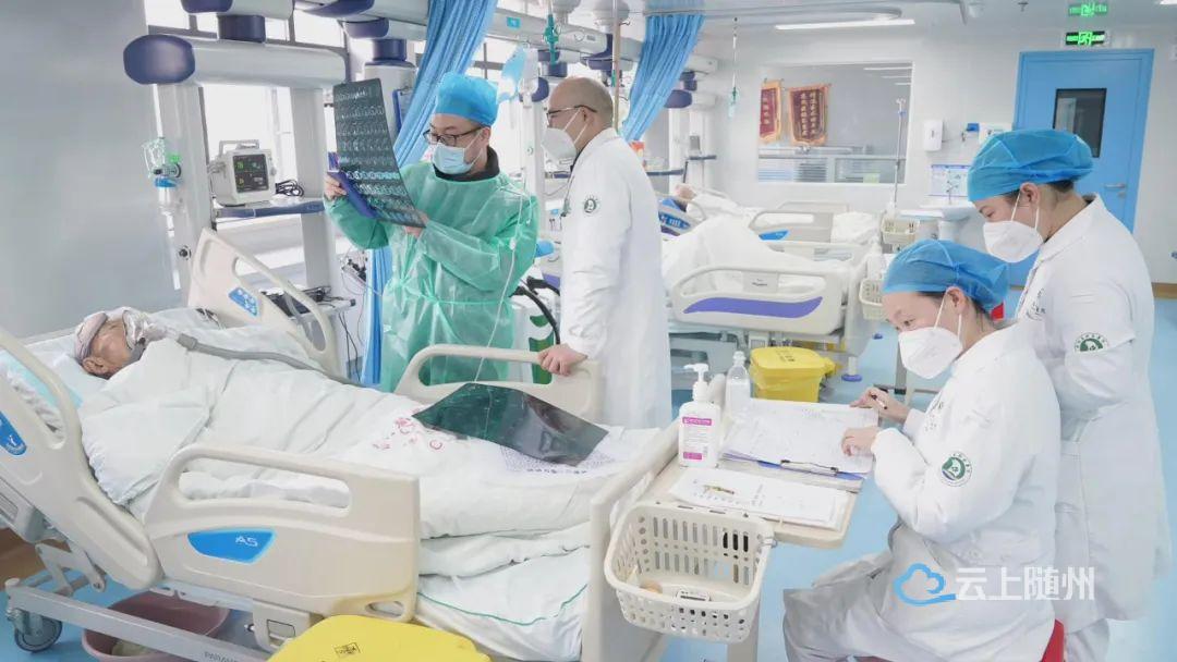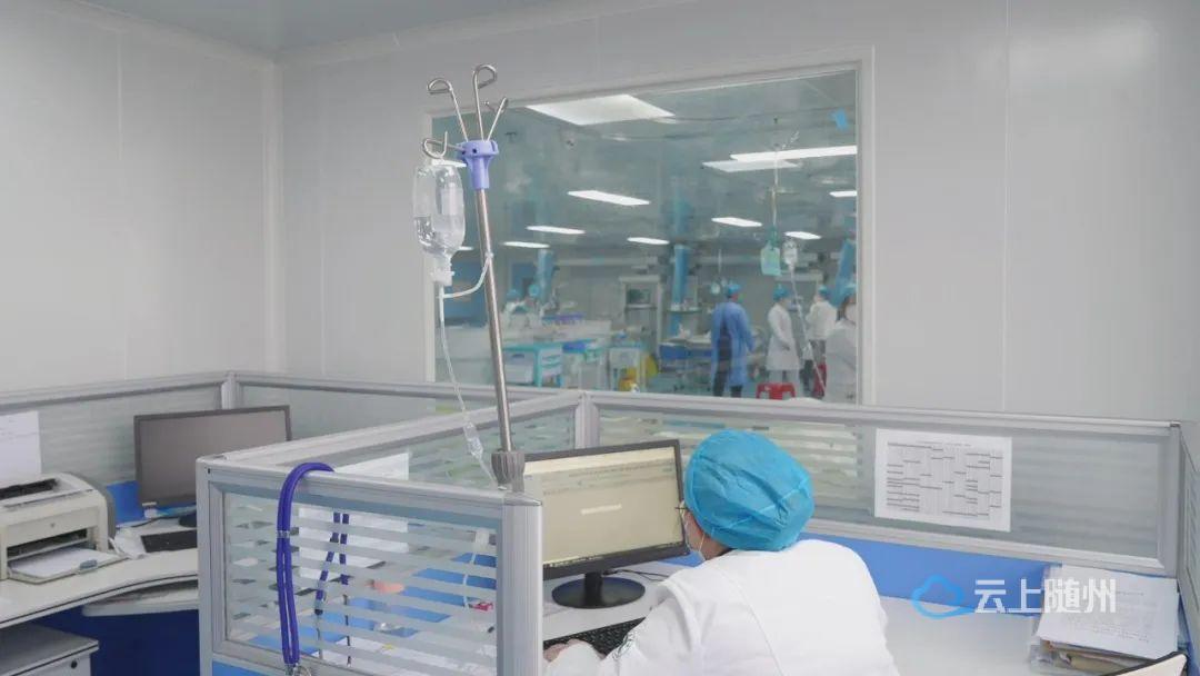 面临第一波感染高峰的冲击,在随州高新区医院重症医学科,争分夺秒抢救患者的场景每一天循环出现。医护人员穿梭在患者中,上呼吸机、置管、输液、换药、核对患者信息;诊室内的医生不停地敲击键盘,为患者录入病情、开具处方;操作间的护士细之又细,像对待自己家人一样照顾着每一名患者。他们挂着吊瓶依然坚守在自己的岗位,他们默契而又一刻不停地维系着ICU这个精密复杂的机器正常运转。
