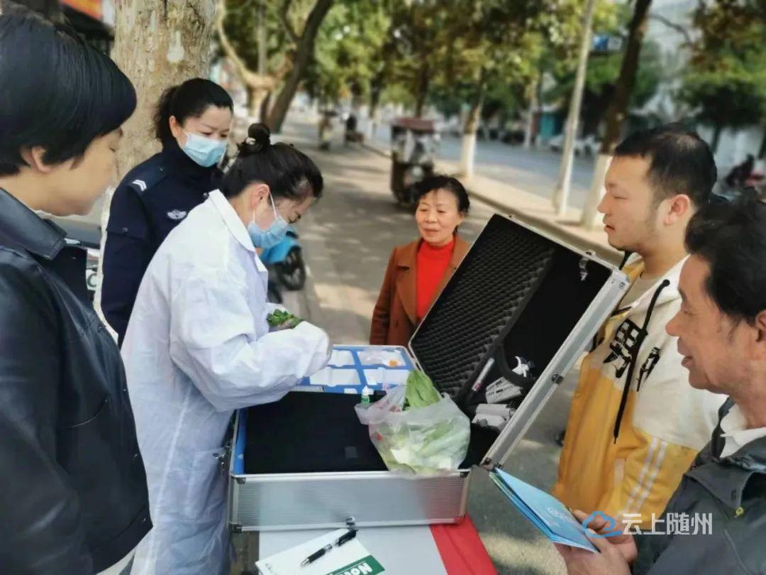 在西城市场监管所,一场“你点鄂检”食品快速检测进社区、进超市、进农贸市场的活动正在开展,群众拿着购买的蔬菜,等待工作人员的现场检测结果。