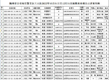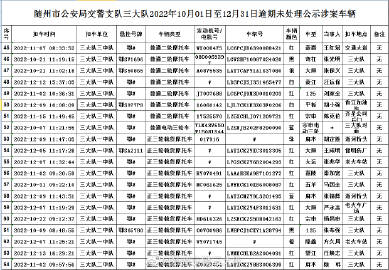 2、请以下车辆的驾驶人、所有人或管理人在本公告发布之日起三个月内携带身份证、驾驶证、行驶证或车辆合法来源证明到随州市公安局交通警察支队三大队接受处理。