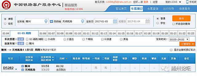 1月5日起随州乘动车直达天河机场