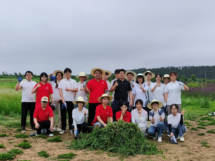 图为“拔草护苗”活动合影留念