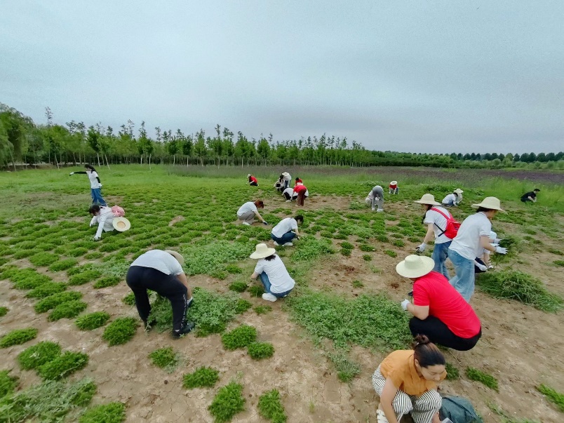 在拔草的过程中,队员们还时不时地相互交流,分享着各自的感受和体验。他们谈论着农作物的生长情况,讨论着如何更有效地清除杂草,识别着杂草当中的野菜,甚至还不忘开几句玩笑,纷纷表示要把这些野菜带回去炒出一盘菜,这都让原本枯燥的劳动变得生动有趣。这种团结协作、互帮互助的氛围,让整个田野都充满了温暖和力量。