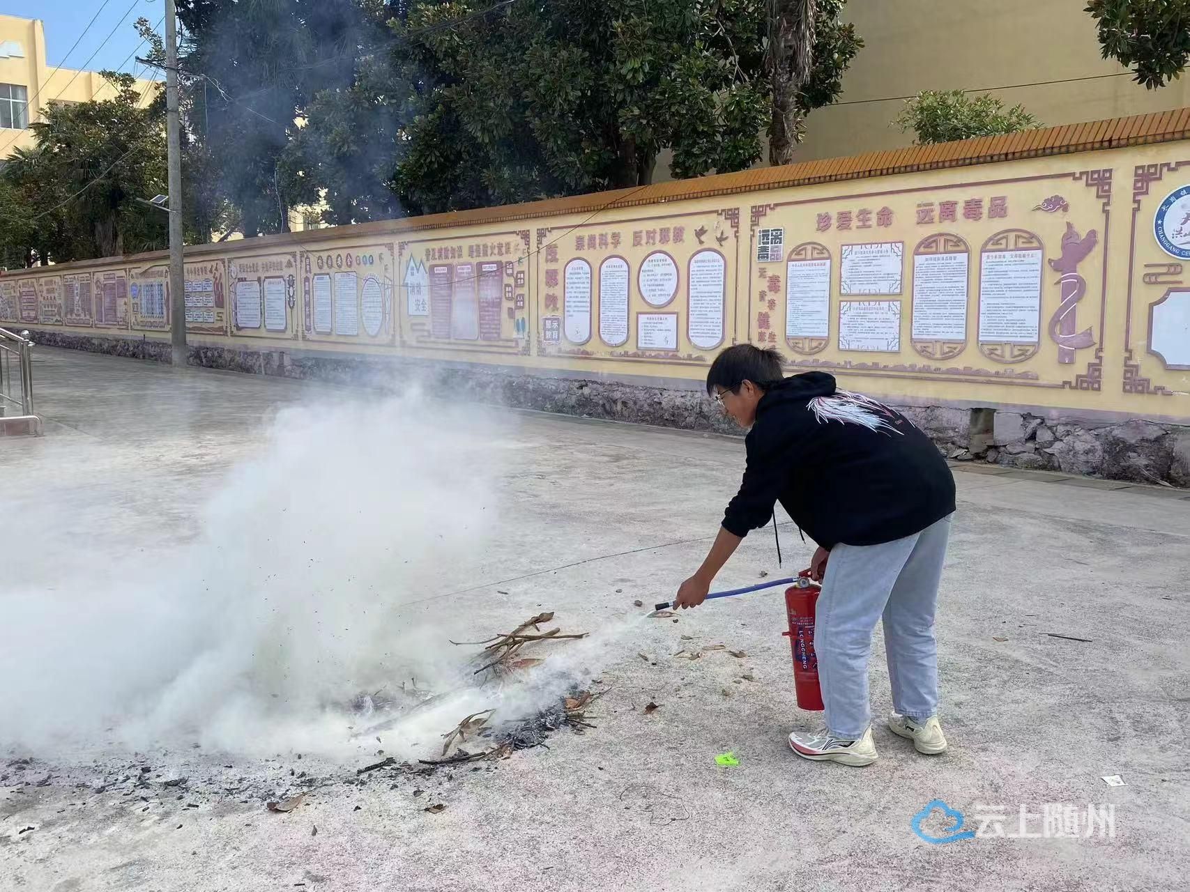 九年级高文博同学为大家演示了灭火器的使用方法,校长赵孝坦作点评总结,强调了灭火器的使用注意事项,同时充分肯定了师生们的镇静表现,并结合身边真实的火灾案例,引起全体同学高度重视,提高学生的消防安全意识、生命安全意识,全面把握自救技能,加强安全防范自救能力。