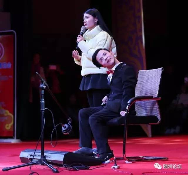“我知道我一直有双隐形的翅膀,带我飞给我希望,我终于看到所有梦想都开花,追逐的年轻歌声多嘹亮”……他叫李传杰,是一名早产儿,在他出生三个月后,被医院诊断为先天性小儿脑瘫。虽 患先天性疾病,但他坚信自己有一双“隐形的翅膀”,用双脚弹出世间最美的旋律,被誉为脚尖上的钢琴师和脑瘫音乐达人的李传杰、杨洁也来到随州公益慈善春晚现场,为观众们表演了电子琴伴唱《 隐形的翅膀》,赢得观众的一阵阵掌声。