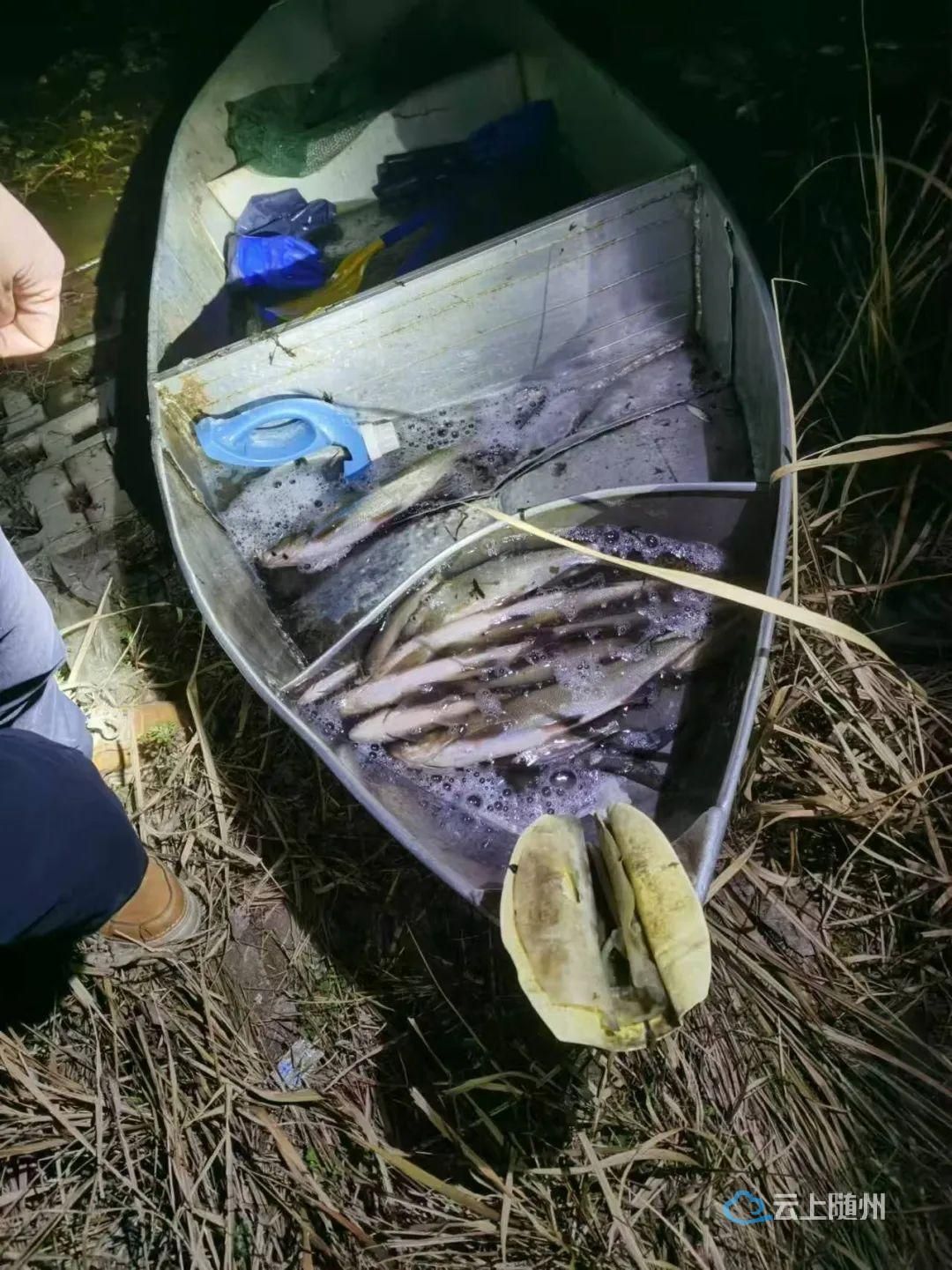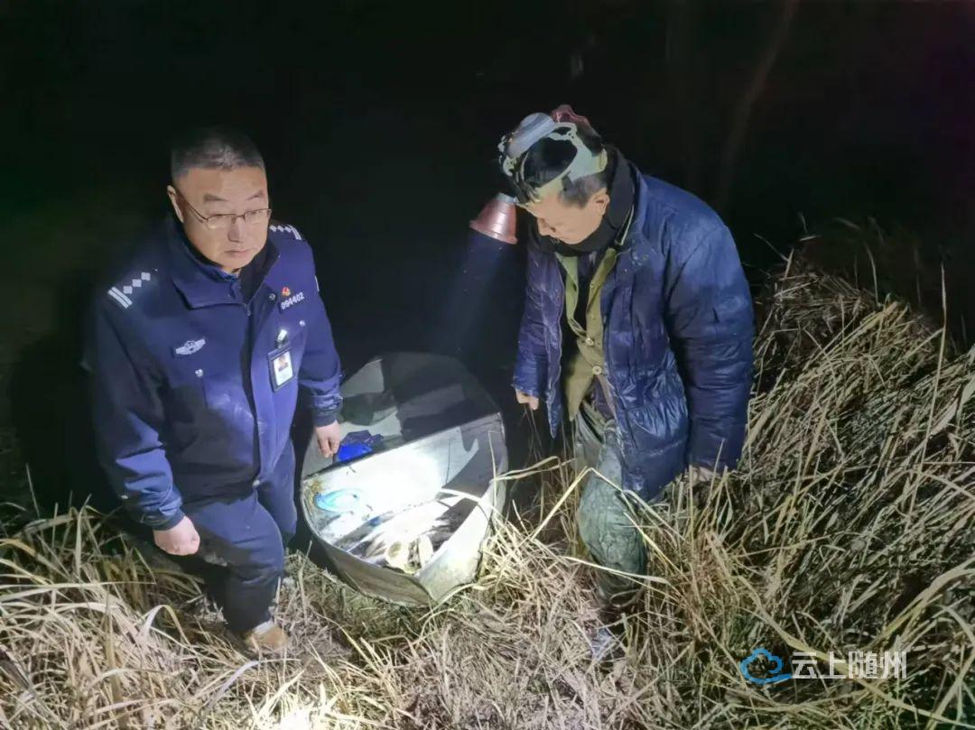 近日,有群众多次反映,白云湖河畔有人电打鱼。曾都区公安分局森林警察大队经过多次巡查和摸排线索,确定了电打鱼的重点区域。于2024年12月24日晚至25日凌晨3点,在白云湖红山头河段蹲守,抓获2名非法捕捞的违法行为人。经查,12月24日晚11时许,违法行为人王某和妻子带着渔船、网具、电瓶等工具,到白云湖红山头河段下网捕鱼,直至被查获。目前,此案正移交给渔政部门作进一步处理。