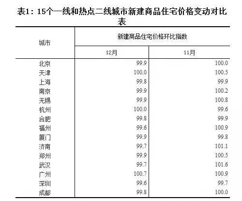 刘建伟表示,15个一线和热点二线城市因地制宜、因城施策实施调控政策以来,政策效果明显,房价快速趋稳回落。其中,12个城市12月份新建商品住宅价格环比下降,降幅在0.1至0.4个百分点之间;2个城市环比持平;广州市环比上涨0.7%,但已连续3个月涨幅回落。