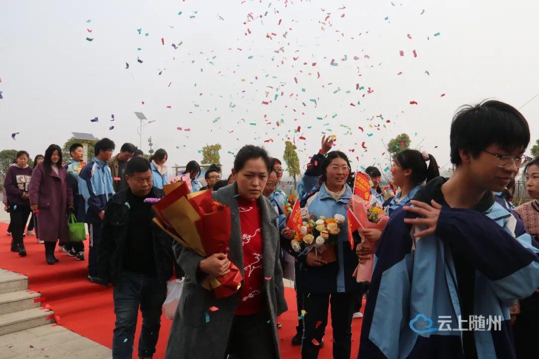 鱼跃龙门,跨越成功。各班高举班旗,踏过红毯,跨过成功门。校领导、老师、家长为同学们呐喊助威、击掌加油。场面激动而又热烈。全体师生纷纷在心愿墙上郑重签下自己的姓名与期望,一笔一划,一撇一捺,既是承诺,亦是鞭策,汇聚成迈向人生新起点的决心。