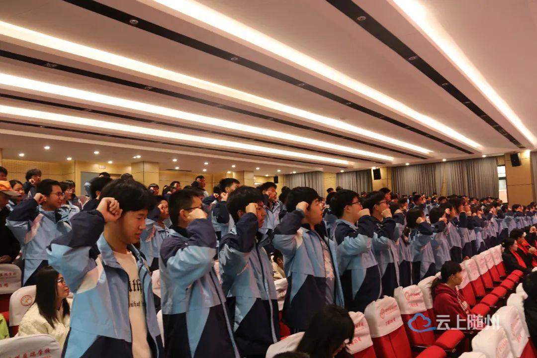 国旗飘扬,岁月正好;使命在肩,勇敢担当。大会在恢弘而雄壮的国歌声中拉开帷幕,师生们肃立敬礼,齐唱国歌。