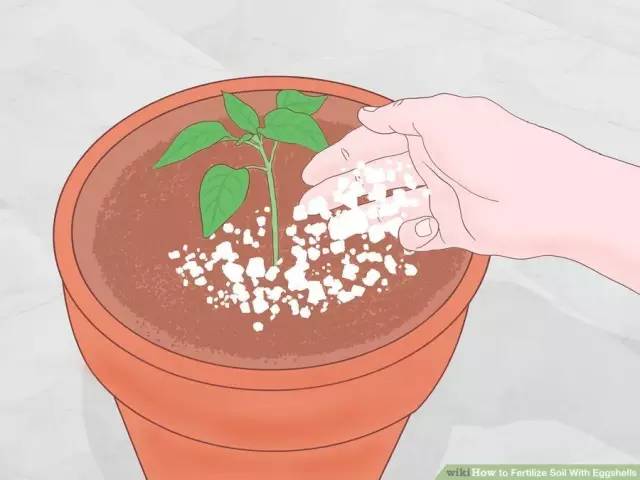 ▼鸡蛋壳晒干后,捣碎,放入盆栽中。