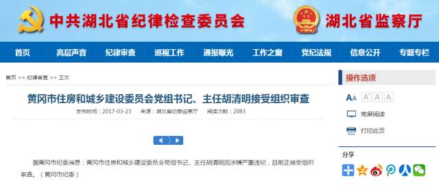 近日,湖北省纪委监察厅网站更新一则纪律审查消息: