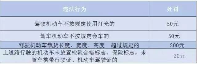 (以上处罚规定均来自《湖北省道路交通安全违法行为代码》)