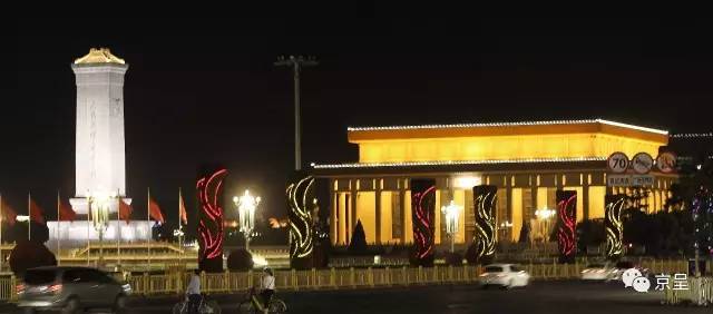 广场上的人民英雄纪念碑和毛主席纪念堂璀璨夺目。
