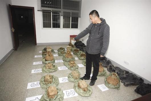 就在当天,河南的一个买家听说文物已经卖给山西,便中途折返回去。另一个来自河南的买家匆匆来到随州抢货,与赵某在随州一家宾馆交涉时,被警方当场擒获。