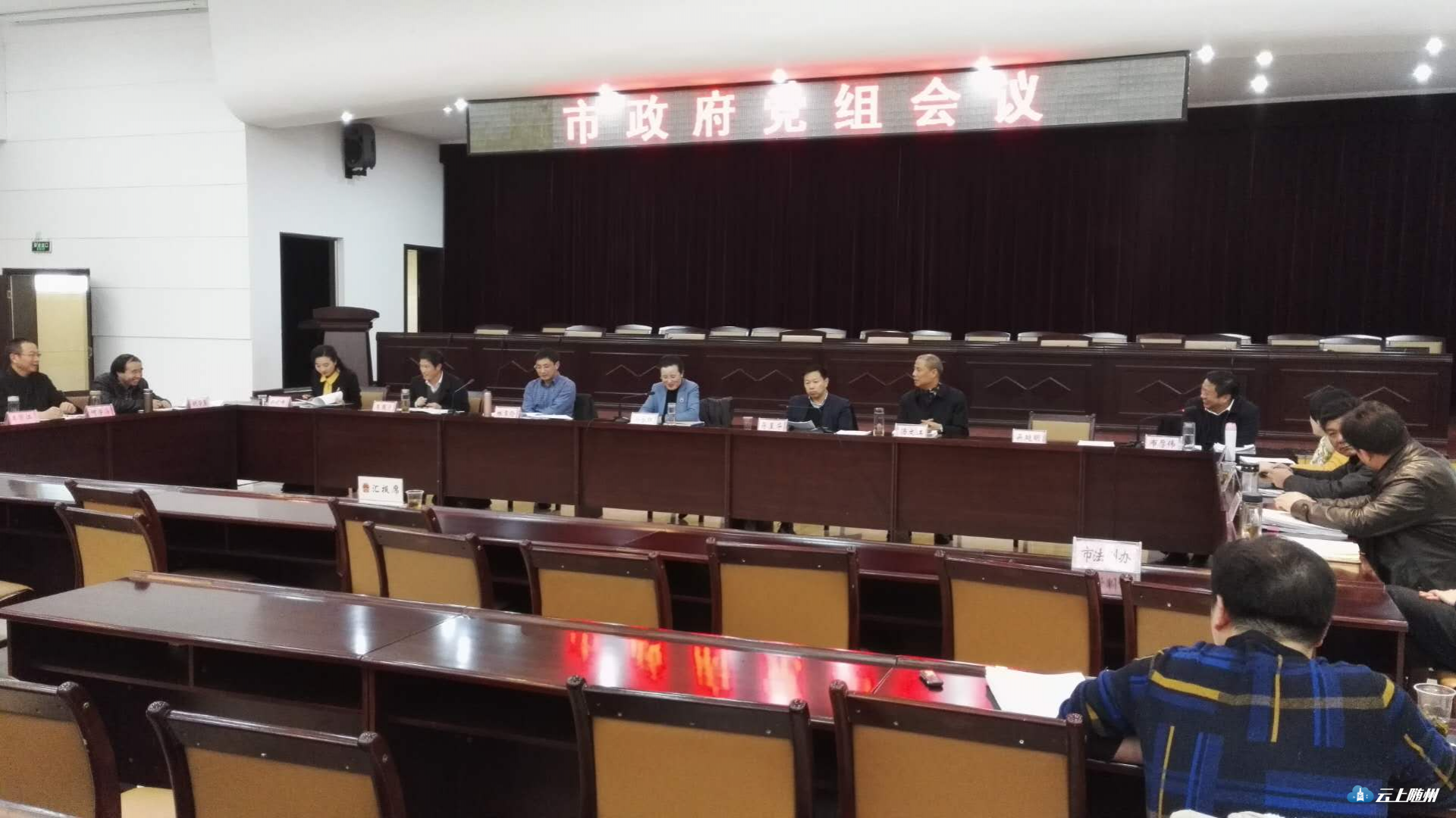 12月1日,市政府党组会议召开。市委副书记、代市长、市委政法委书记郭永红,市委常委、常务副市长蒋星华,市委常委、市政府党组成员、随州高新区党工委书记林常伦,副市长、市公安局长汤文江,副市长李国寿、郑晓峰,市政府党组成员、秘书长布厚伟参加会议。