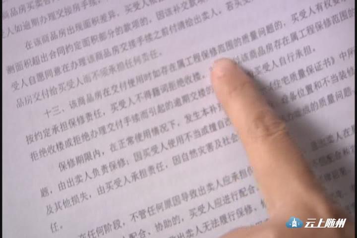 记者看到,房子餐厅和次卧确实有裂缝,用水浇灌后更为明显。黄女士拿着质保合同,指着第十三条的款项告诉记者,这里写明:商品房在交付使用时如存在属工程保修范围质量问题的,买受人有权要求补修,出卖人按约定承担保修责任,买受人不得籍词拒绝收楼。她认为,房屋出现裂缝只给修不给换,对于业主来说不合理。