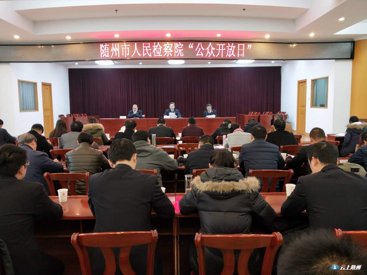12月4日上午九点,随州市人民检察院“公众开放日”活动在市检察院三楼会议室举行。本次活动以保护生态环境、促进绿色发展为主题。参加此次活动的有人大代表、政协委员、人民监督员、国土局、环保局、水利局、林业局等部门同志。活动主持人魏检。