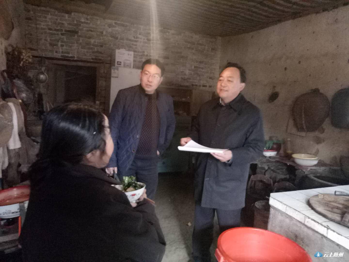12月4日,区委书记何运平到洛阳镇永兴村进村入户,宣讲政策,调查贫困户“三相符”等情况。
