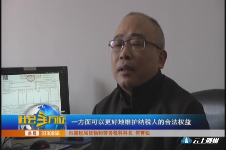 【采访】 市国税局货物和劳务税科科长 何育松:一方面可以更好地维护纳税人的合法权益,鼓励我们广大消费者主动索取发票,同时对我们规范发票的开具和使用起到很大的促进作用,而且第三个还能有效地防止税款的流失。