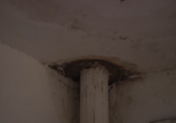 (采访:郭先生)今年下雨下连了,导致里面浸水,我家里多处出现了这样的现象。我就去找他们(物业),他们把上面疏通了。记者在郭先生家的楼道和房间里看到了多处渗水过后的水渍,有的乌黑一片,有的墙皮脱落,有的布满霉点。郭先生说,自己去找物业公司,想让他们从物业费中支出维修墙壁的费用,可物业公司的说法却让他很不满意。