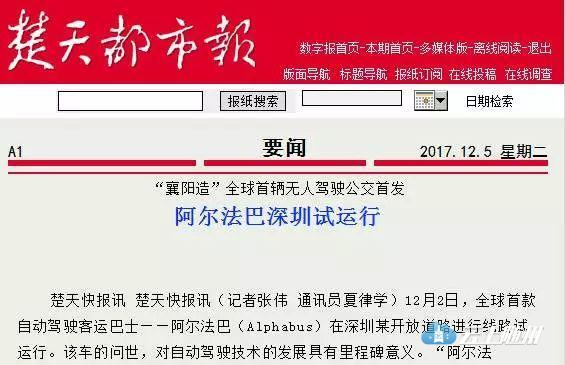 12月2日上午,4台“阿尔法巴智能驾驶公交系统”的深圳巴士集团公交车在福田保税区首发试运行。