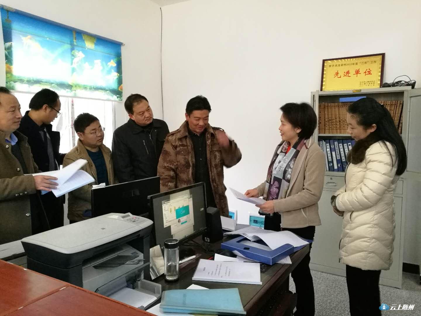 毕道丽一行首先到武圣宫村委会,查阅了贫困户档案、脱贫验收档案等,询问了财政扶贫资金、奖补政策落实情况和民主评议等相关工作。在随后召开的座谈会上,毕道丽听取了驻村工作队的汇报,详细了解当前扶贫工作的重点及难点,与大家一起讨论下一步工作打算,商量破解难题的方法举措。