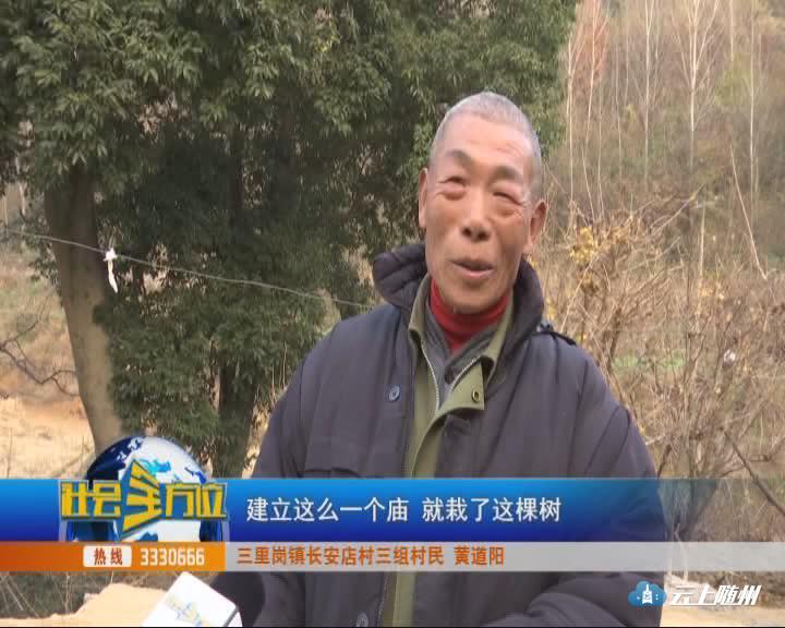 【采访】三里岗镇长安店村三组村民黄道阳是在乾隆四十一年以前,建立这么一个庙,就栽了这棵树。