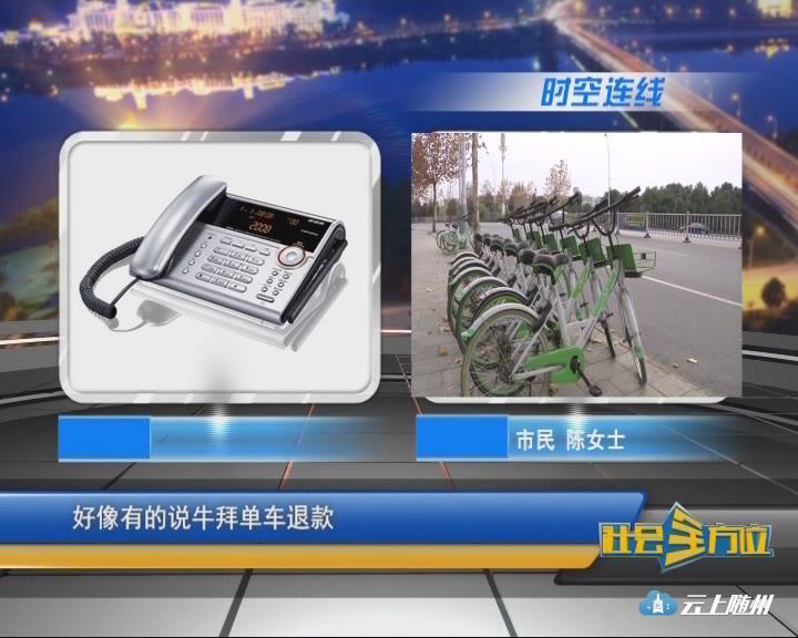 【电话采访】市民陈女士;我在网上看了就听说了这方面的信息,好像有的说牛拜单车退款是没有短信提醒的,要自己到银行去查,我就真的到银行去看了,还是没有到账,我就有点急,因为时间拖这么久了。没办法,我就打他的微信上的客服电话,客服老是忙打不通,然后我就在网上听说牛拜单车有个武汉的固定电话,打过去说是欠费停机了。