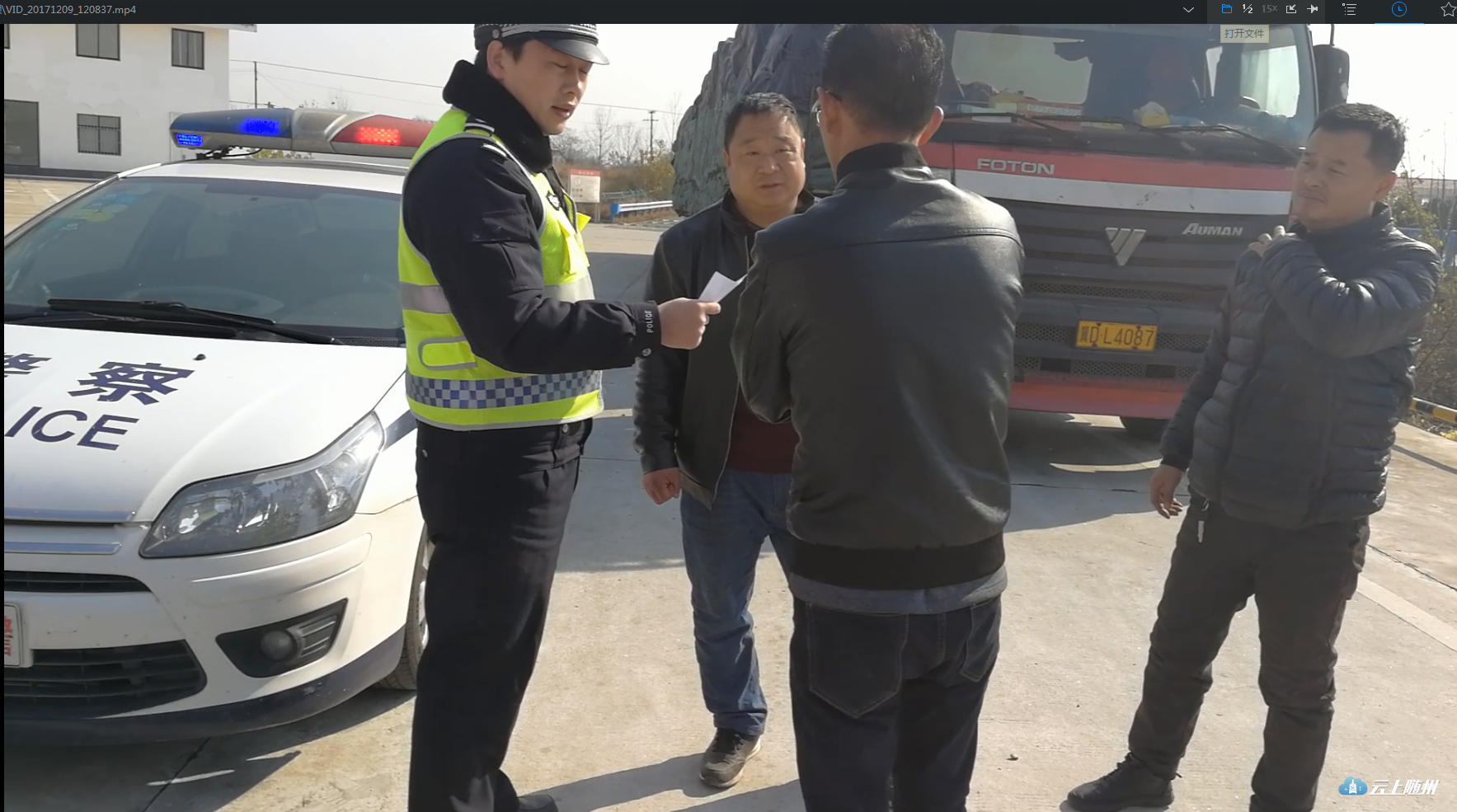 在李店停车区,面对民警的调查,双方都振振有词互不相让。于是,民警将双方带下高速公路进行调查调解。