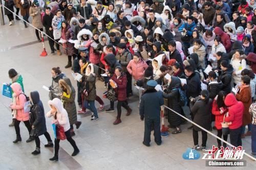 12月10日,山西太原一公务员考点,考生排队准备进入考场。中新社记者 武俊杰 摄