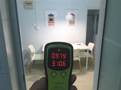 11月17日,东城区夕照寺街某小区自如出租房内,空气质量检测仪上显示甲醛浓度是0.394毫克/立方米,仪器显示红灯,并发出报警声。