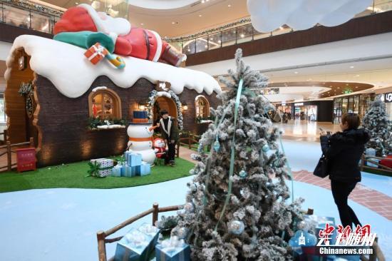 资料图:一座巨型“圣诞老人”亮相浙江杭州的某家商场。中新社记者 王远 摄