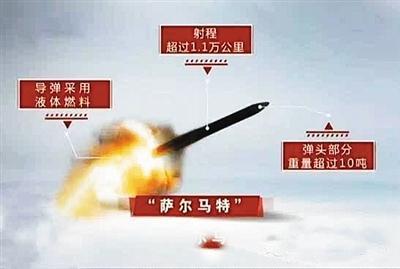RS-28“萨尔马特”是一种重型液体燃料陆基洲际导弹,爆炸当量2500万吨,弹头重约10吨,能携带10—15枚分导核弹头,射程超过1.1万公里,可瞬间抹平54万平方公里,相当于美国德州或法国大小,半枚足够覆盖全日本。