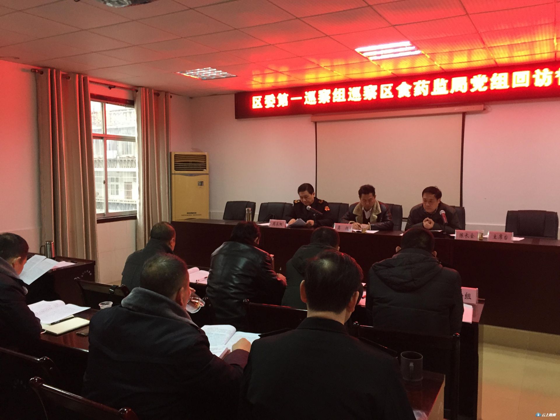 12月14日,区委第一巡察组巡察区食药监局党组回访督查汇报会召开。
