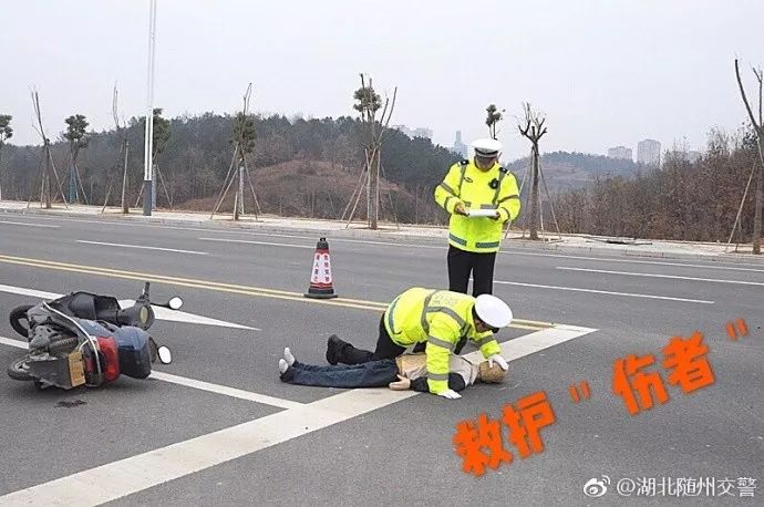 交警蜀黍们使出浑身解数,虽然是模拟的事故现场,但他们一丝不苟,不放过任何一个细节。