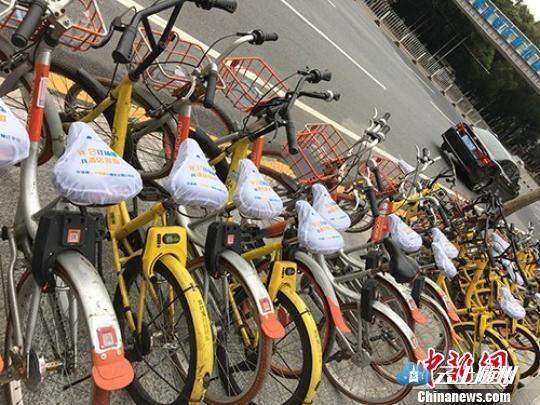 共享单车座椅被违法小广告企业“上套”。 钟欣 摄
