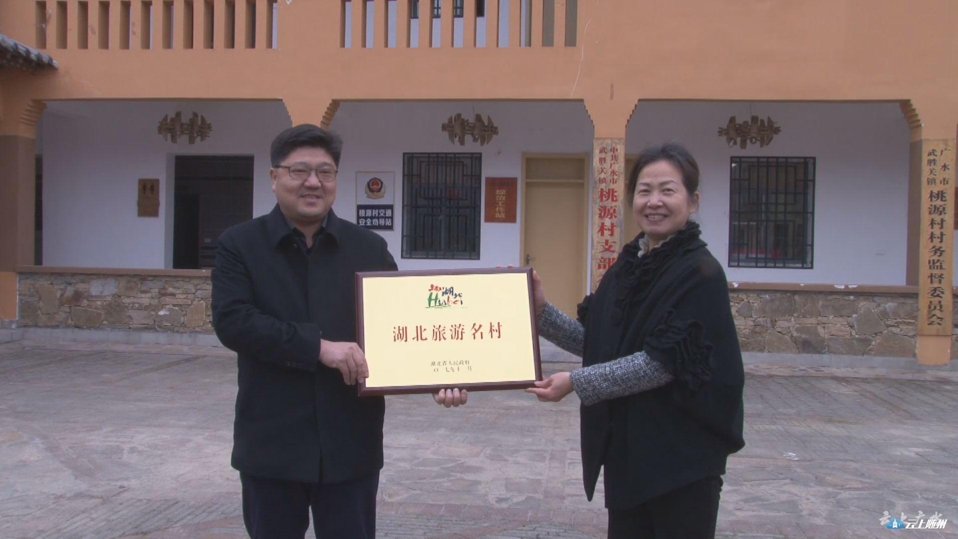 12月12日,省旅游委副主任周正素到我广水市调研乡村旅游发展工作,并向武胜关镇桃源村授予“湖北旅游名村”荣誉称号。