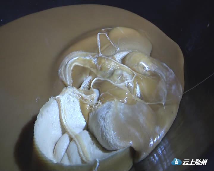 【采访】黄运富:麦芽粉成浆,往米饭上泼,将他们搅拌均匀。