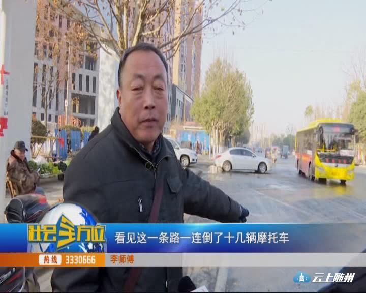 早上来买菜,走到这个地方,看见这一条路一连倒了十几辆摩托车。都摔倒了,腿摔跛了。