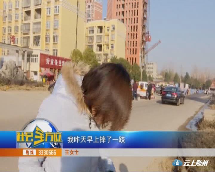 不多会,一名骑电动车上班女士走到路口也差点摔倒。