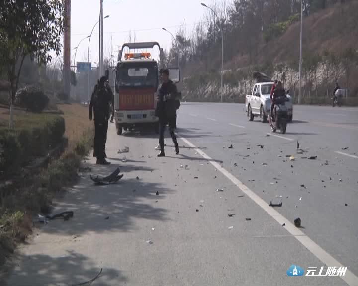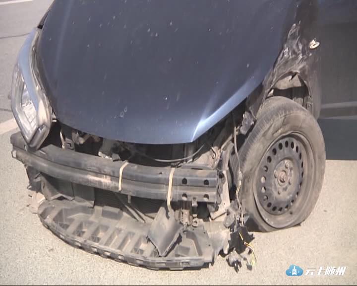 【同期声】保险公司工作人员:两辆车都是从这边往那边走,是从高速路口下来的,这辆车在前面调头,把后面的车撞了之后,后面的车,由于往那边避让就冲到花坛去了。(怎么跑到那么远的地方去了?)可能速度有点快,操作不当,它是自动挡的车。可能刹车不及,就撞过去了。(我看两辆车的损坏的比较严重,是什么程度的损坏?)这个应该是属于大事故。(有人员受伤吗?)没有。