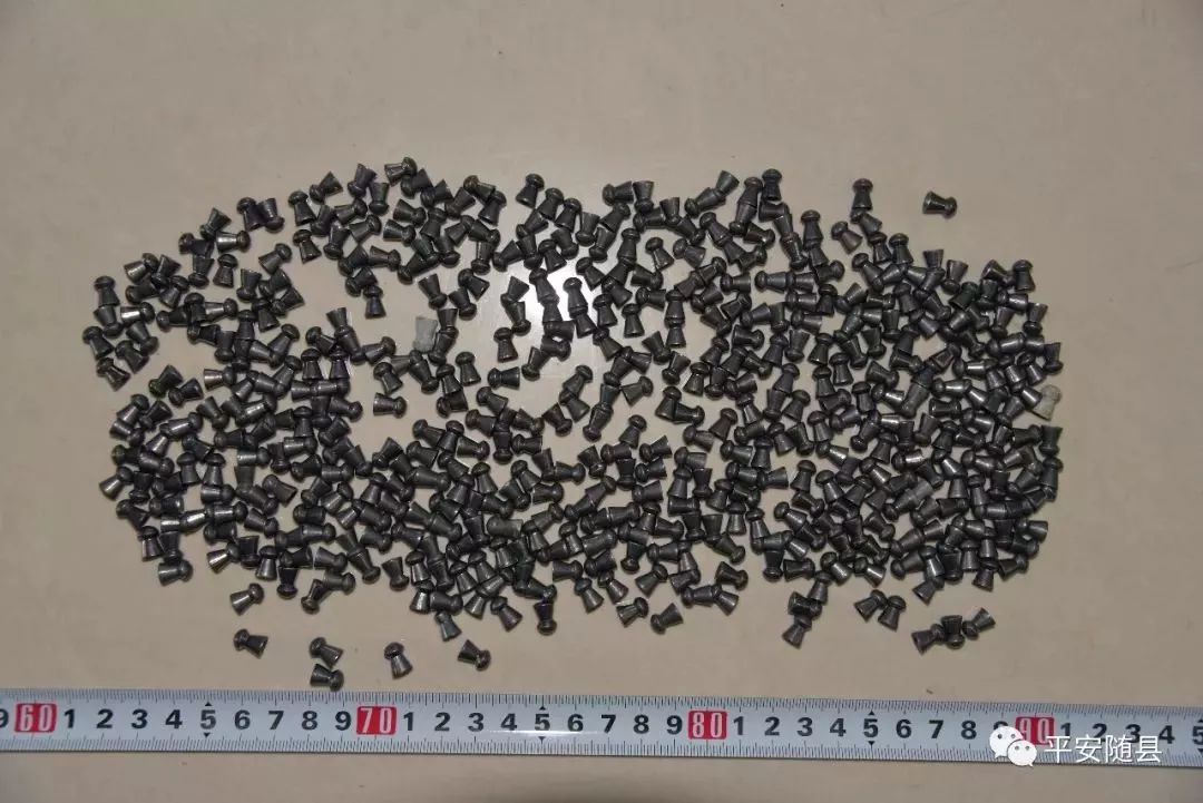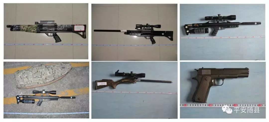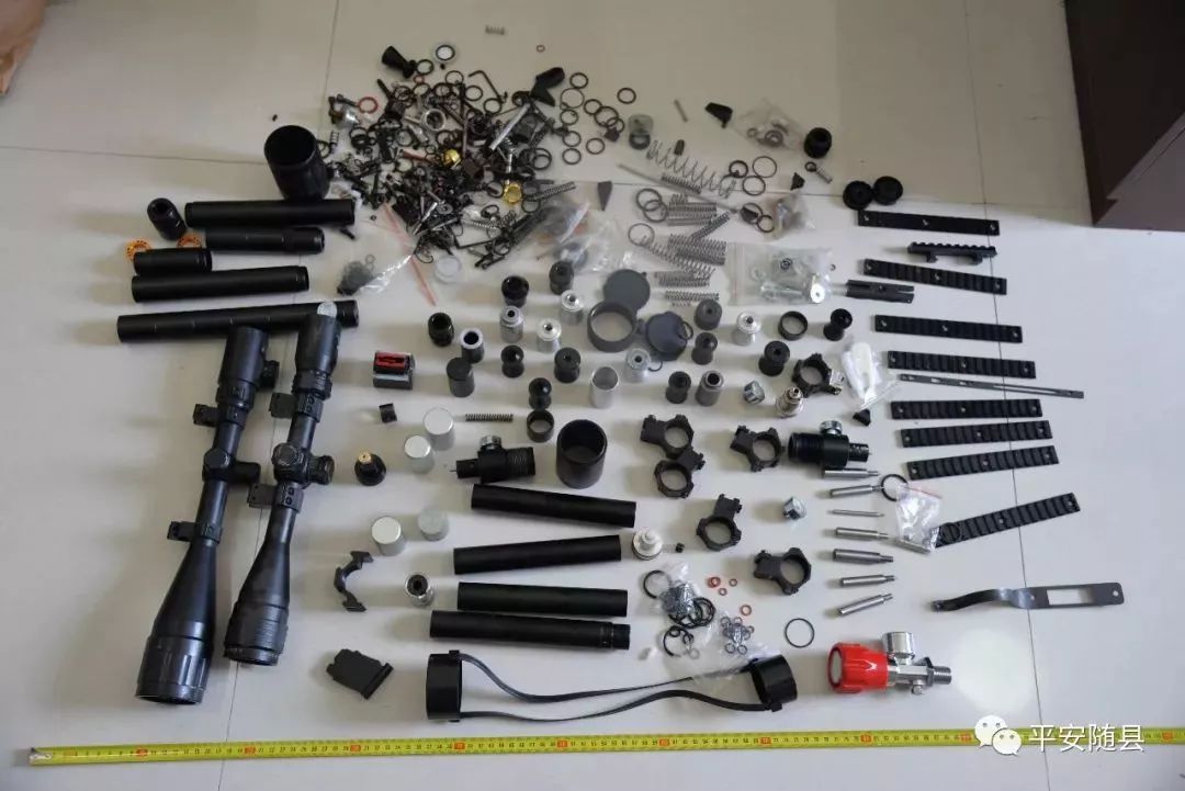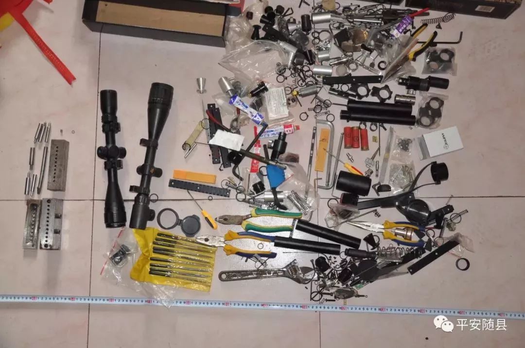 截至目前,警方共查获以火药为动力的枪支2支,高压气枪10支,小口径子弹300余发,军用子弹4颗,射钉弹2800余发,成品、半成品枪管65支,枪机套件44套,以及大量的扳机、击锤、弹簧、螺丝等枪支零部件,制作枪管的车床3套,顶枪管膛线的千斤顶一个。