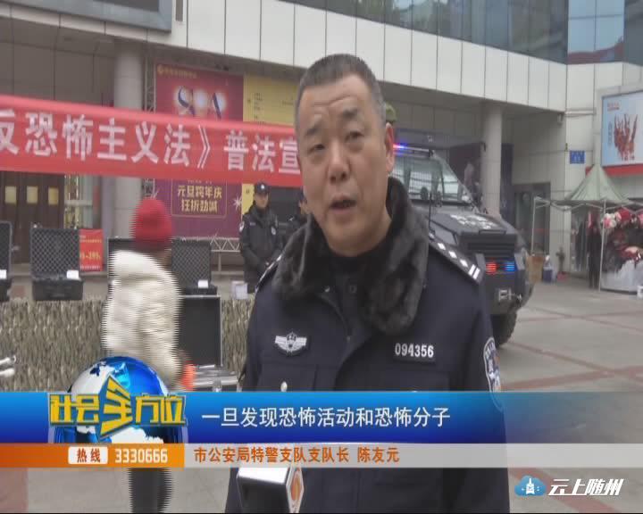 【采访】市公安局特警支队支队长 陈友元: 我们也希望全体市民协助支持我们公安机关的工作,一旦发现恐怖活动和恐怖分子要及时向公安机关报告,我们会及时控制、制止恐怖活动,抓捕或者是击毙恐怖分子,来维护随州的幸福与安宁。