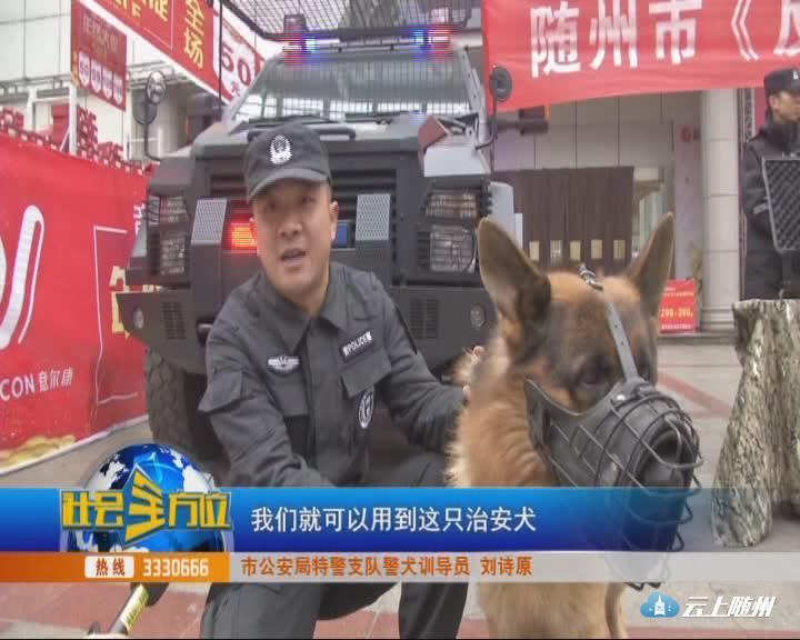 【采访】市公安局特警支队警犬训导员 刘诗原:比如一些敏感的场所,正在实施打砸抢烧的一些恐怖分子,我们就可以用到这只治安犬,它可以有效的控制正在实施的犯罪。我们单位有四只这样的防爆犬,还有一只搜爆犬。