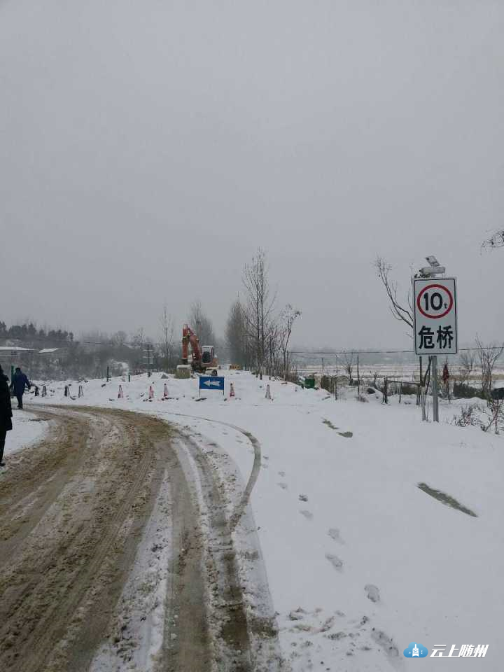 1月4曰,广水市吴店镇组织工作人员到东河村查看路况,确保交通安全和畅通。 1月3日08时至4日08时,广水市累计降雪14毫米,积雪深度9厘米。预计今天白天全市大到暴雪,雪量10毫米以上,今晚到明天白天阴天,明晚到后天中到大雪。